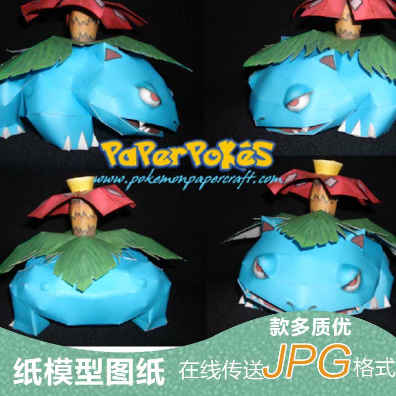 动漫游戏口袋妖怪秒蛙花蓝色立体摆件3D创意手工纸模型图纸电子版热门设计联盟服务商