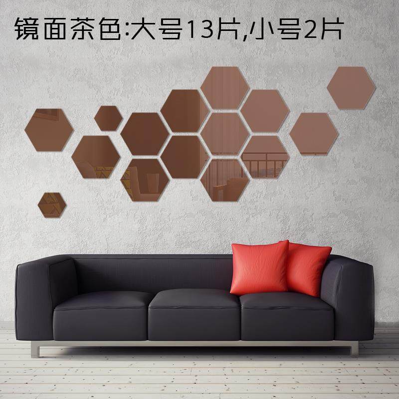 3d立体亚克力镜面客厅墙面沙发电视背景墙自粘六边形装修装饰墙贴