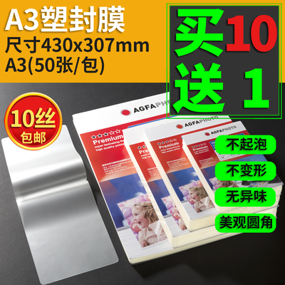 A3塑封膜过塑膜10C丝照片菜单文件护卡膜塑封机过胶纸热塑袋50张热门设计联盟服务商