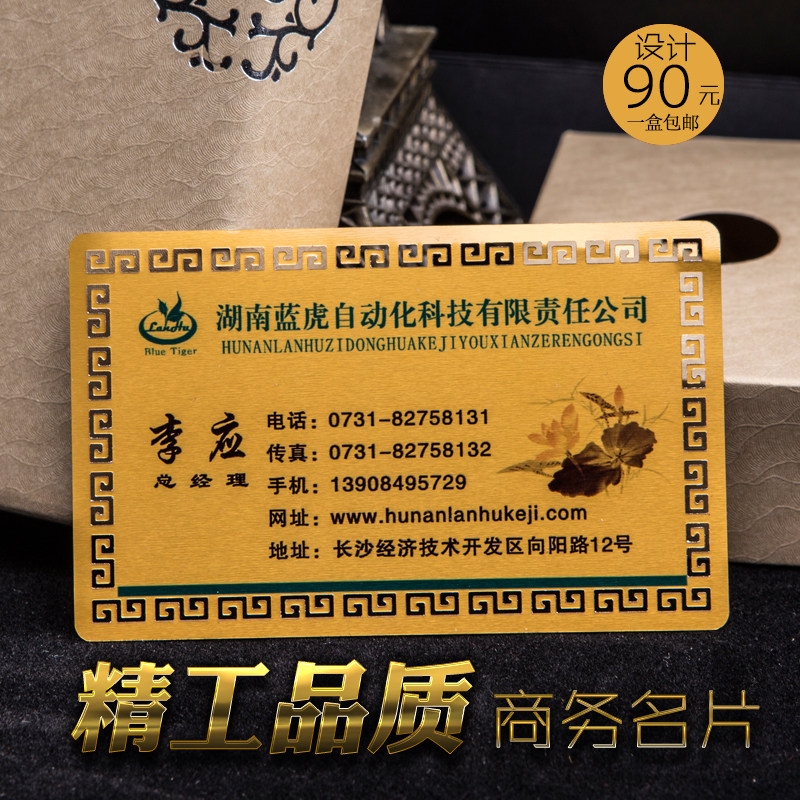 高档名片印刷制作双面彩色金属名片商务定制免费设计镂空创意会员热门设计联盟服务商