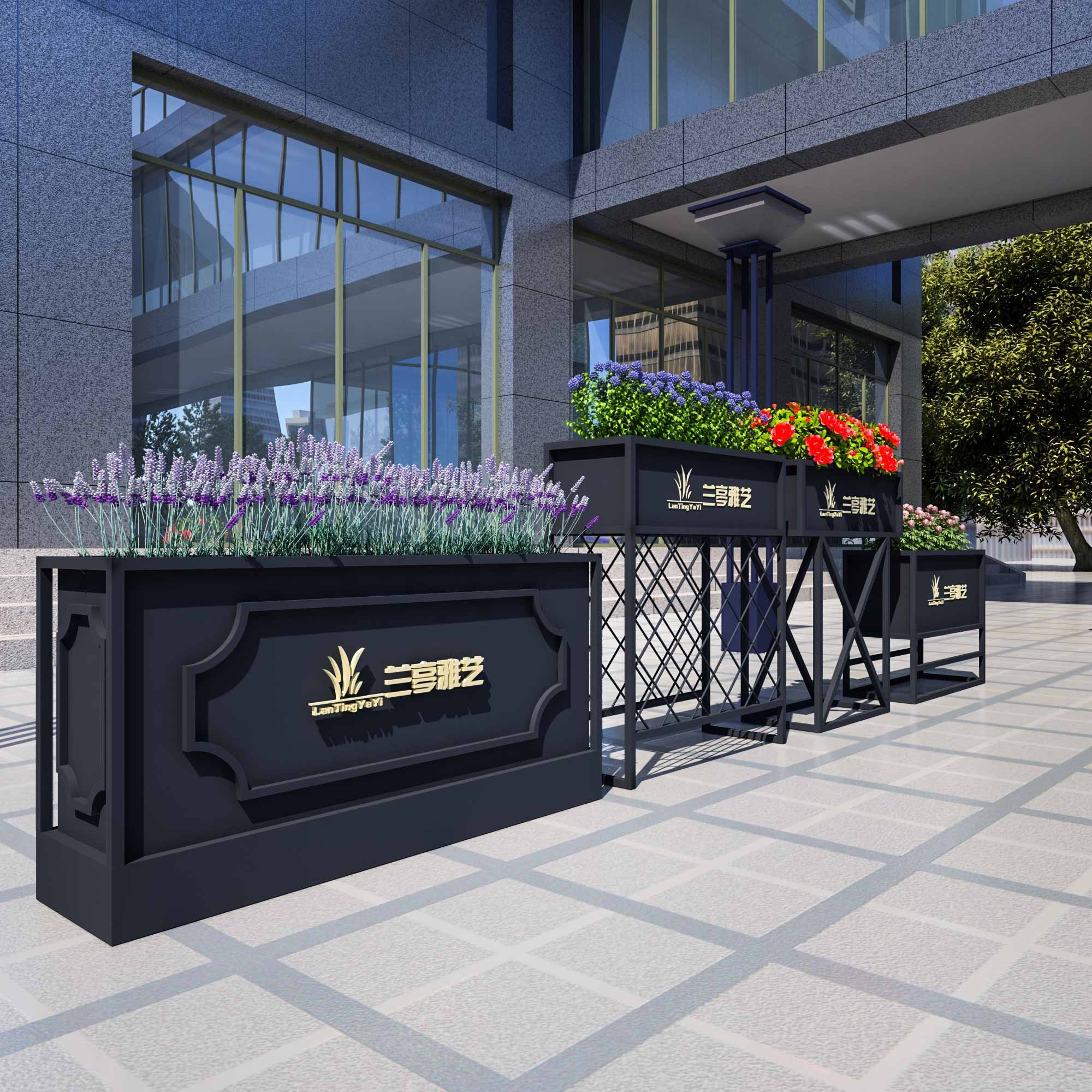 户外简约铁艺花箱庭院外摆广场组合花槽售楼部商业街市政道路花。热门设计联盟服务商
