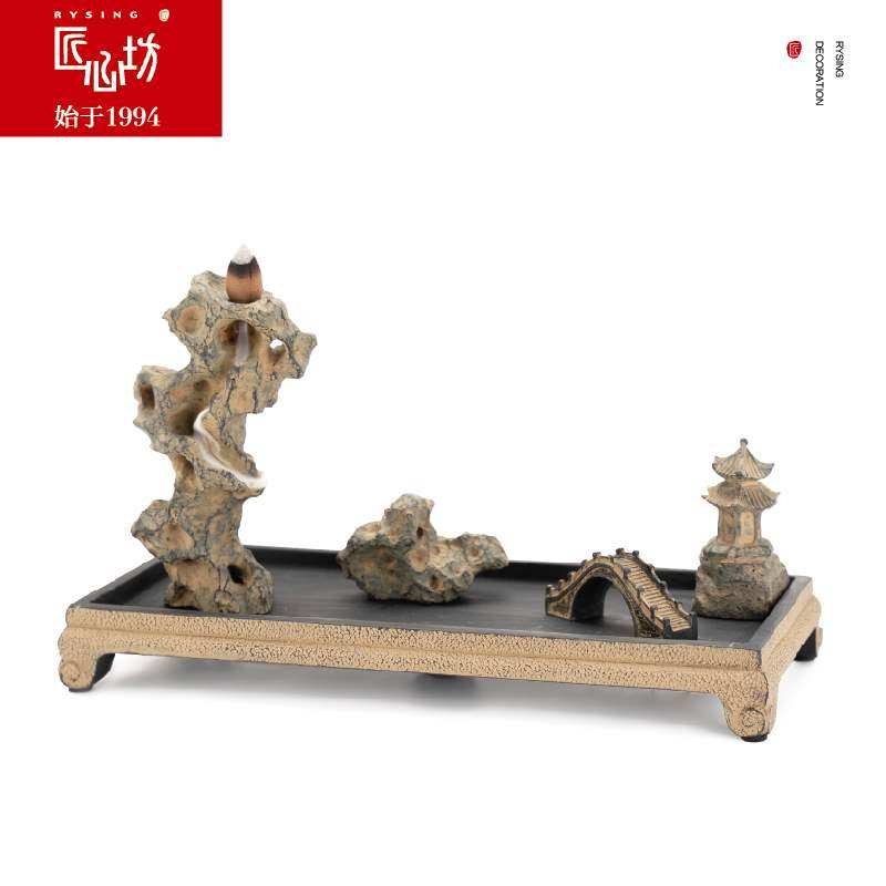 中式山水禅意倒流香摆件客厅茶台香炉迷你枯山水景观装饰品热门设计联盟服务商
