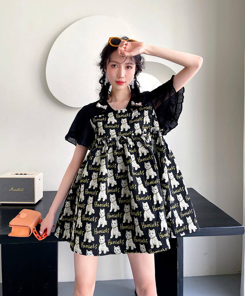 高级感时髦卡通提花连衣裙夏2021新款洋气设计感显瘦a字小黑裙子热门设计联盟服务商